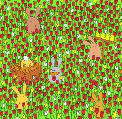 Στην παρακάτω εικόνα βλέπετε κουνέλια και λουλούδια. Κάπου κρύβεται ένα κόκκινο αυγό. Μπορείτε να το εντοπίσετε σε 7 δευτερόλεπτα;