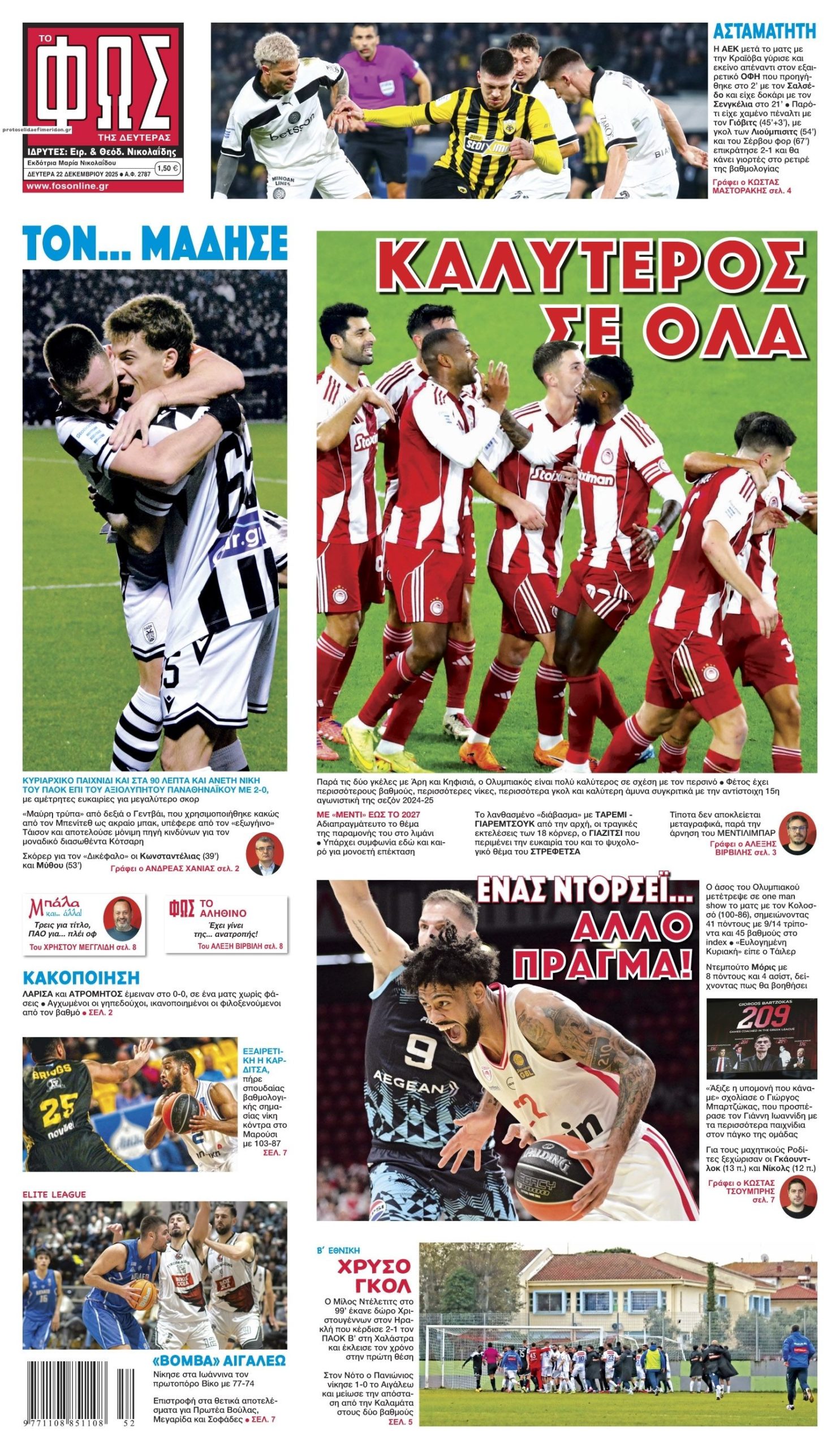 Οι αθλητικές μεταδόσεις 22/12/2025