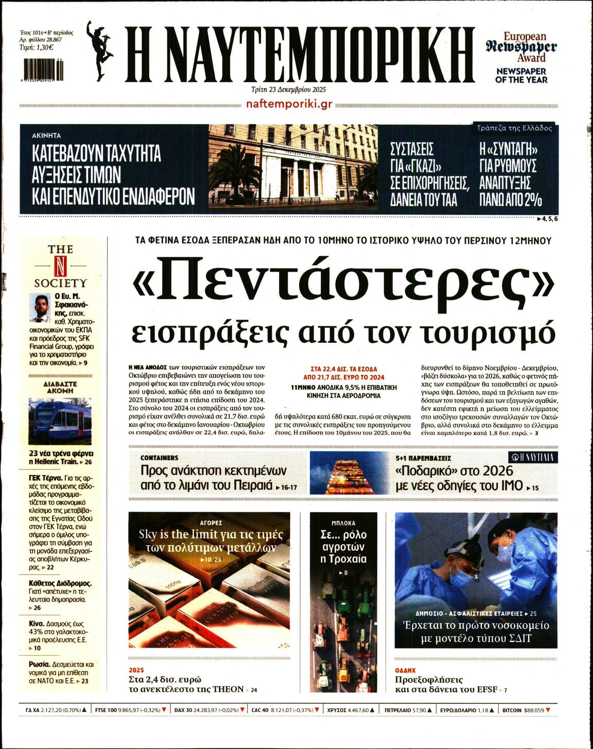 Οι οικονομικές εφημερίδες 23/12/2025