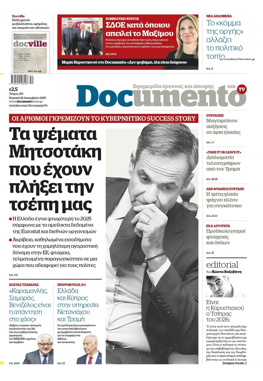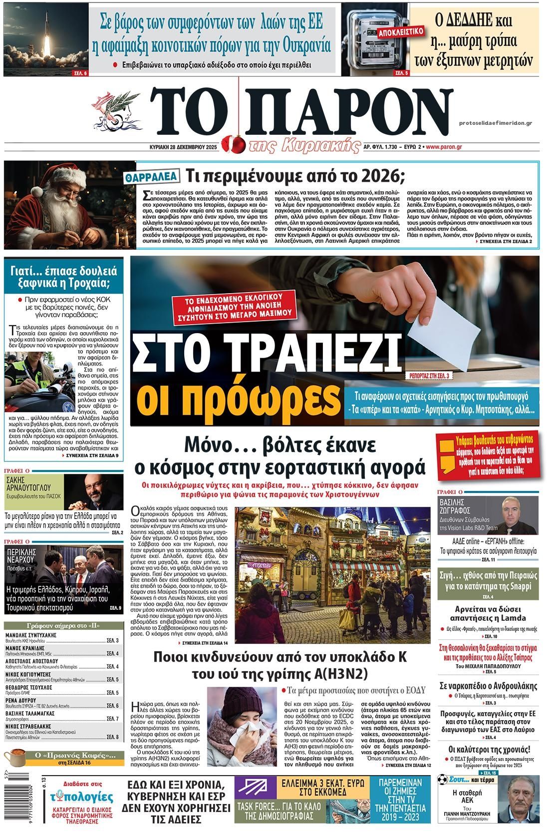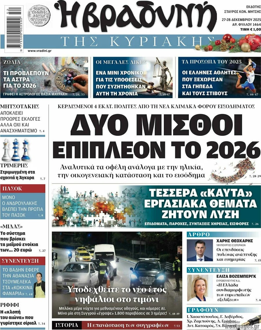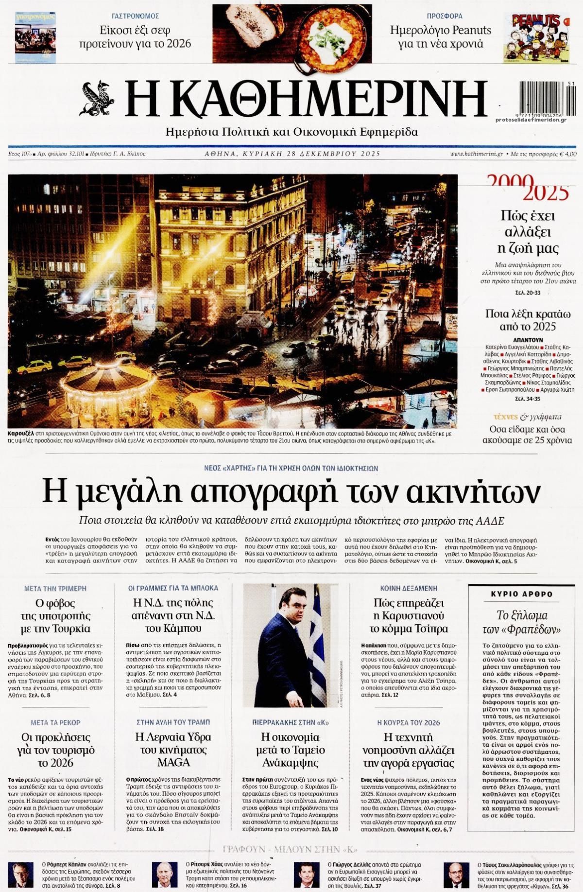 Οι πολιτικές εφημερίδες 28/12/2025