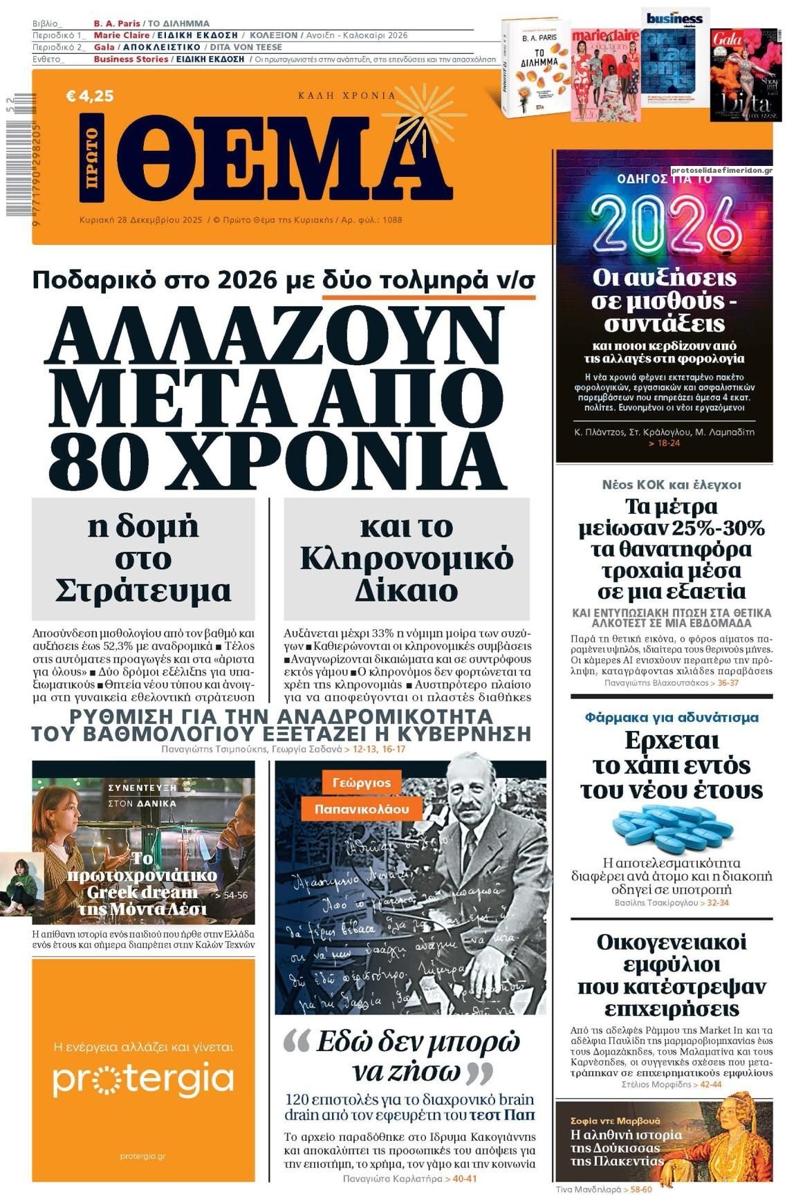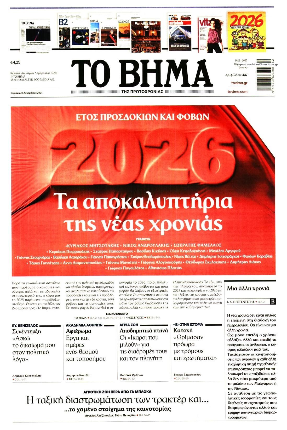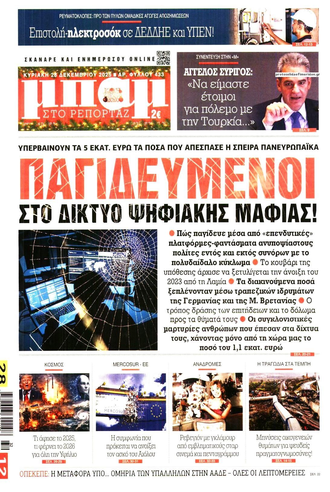 Οι πολιτικές εφημερίδες 28/12/2025