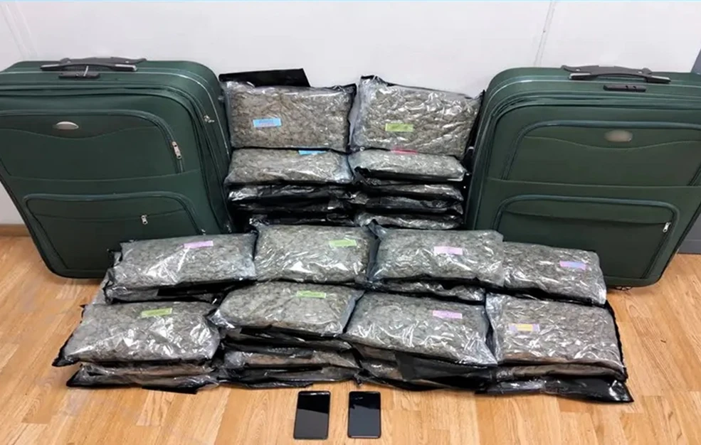 Από τον έλεγχο που πραγματοποιήθηκε στις αποσκευές της βρέθηκε να έχει αποκρύψει σε νάιλον συσκευασίες 24 κιλά και 500 γραμμάρια ακατέργαστης κάνναβης υδροπονικής καλλιέργειας (skunk).