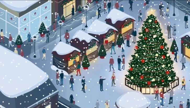 Στην παρακάτω εικόνα βλέπετε μία πόλη στολισμένη για τα Χριστούγεννα.