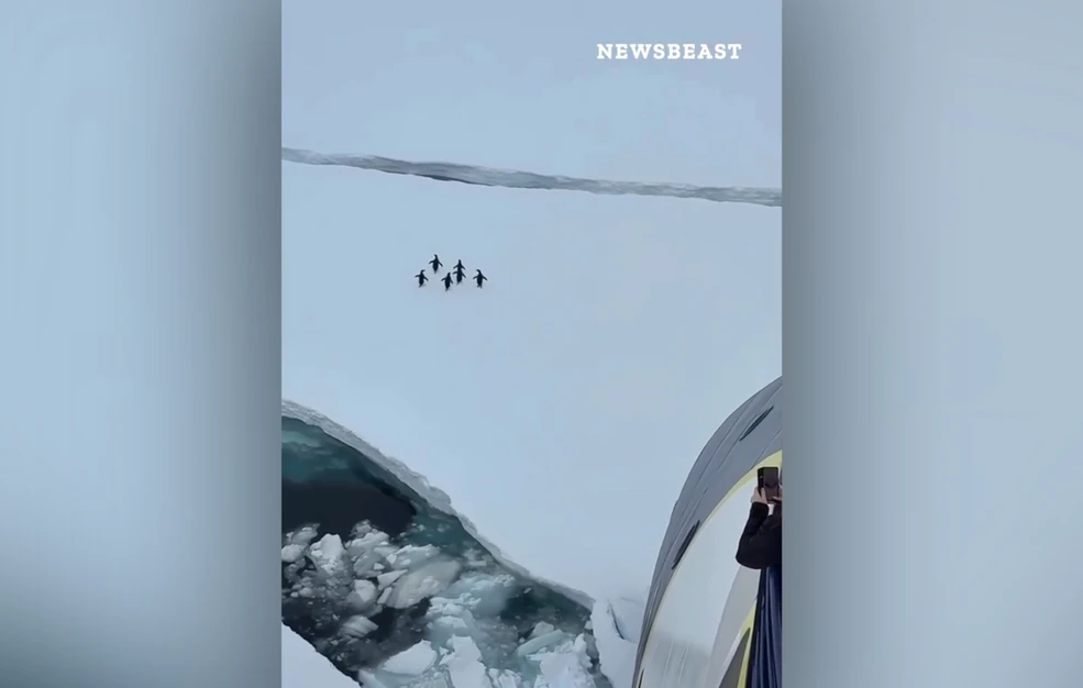 Το βίντεο έχει κάνει το γύρο του διαδικτύου και δείχνει το πλοίο να ακινητοποιείται για να περάσει η αποικία των πιγκουίνων, όπως ορίζουν οι τοπικοί κανόνες προστασίας της άγριας ζωής.