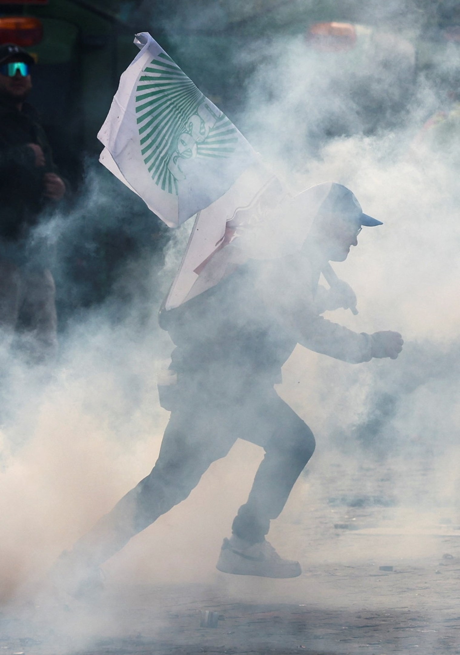 Από το πρωί, η Αστυνομία έκανε χρήση νερού υπό πίεση για να διαλύσει ομάδες διαδηλωτών. Ένας δημοσιογράφος του Γαλλικού Πρακτορείου είπε ότι κουκουλοφόροι έσπασαν τα τζάμια ενός κτιρίου του Κοινοβουλίου.