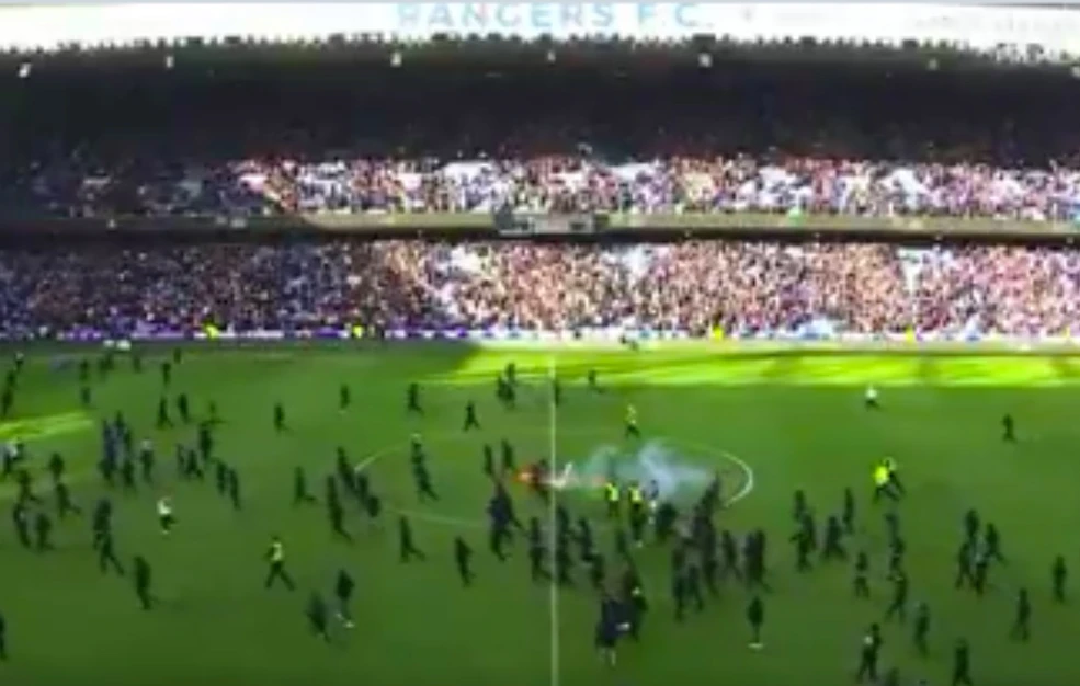 Εισβολή οπαδών στον αγωνιστικό χώρο του Ibrox Park υπήρξε μετά τον ημιτελικό του κυπέλλου Σκωτίας ανάμεσα στη Ρέιντζερς και τη Σέλτικ, η οποία πήρε στη διαδικασία των πέναλτι την πρόκριση για τον τελικό.