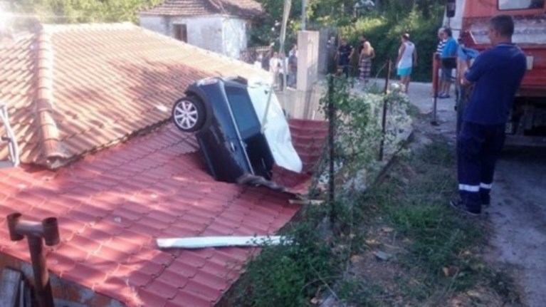 Ενα αυτοκίνητο ενός 64χρονου, στο οποίο μάλλον λύθηκε το χειρόφρενο, κατέγραψε μια τρελή πορεία και έπεσε στην στέγη σπιτιού ενός 74χρονου ο οποίος καθόταν αμέριμνος στο σαλόνι και κινδύνευσε να σκοτωθεί.