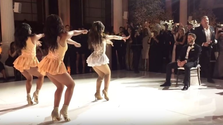 Η νεαρή, η οποία ήταν ιδιαίτερα εντυπωσιακή μέσα στο λαμπερό και κατάλευκο νυφικό της, κατά τη διάρκεια της δεξίωσης φόρεσε λευκό κορμάκι που είχε πάνω του νυφικά βολάν και χόρεψε Μπιγιονσέ.