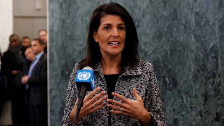 Η πρέσβειρα των Ηνωμένων Πολιτειών στα Ηνωμένα Έθνη, Νίκι Χέιλι, επέρριψε ευθύνες χθες στη Ρωσία για την πρόσφατη κατακόρυφη αύξηση βίας στην ανατολική Ουκρανία, και προειδοποίησε ότι οι κυρώσεις εναντίον της που αφορούν την Ουκρανία δεν θα αρθούν μέχρι η Μόσχα να επιστρέψει την Κριμαία στο Κίεβο.