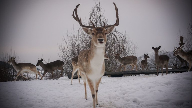 Υπέροχες φωτογραφίες, με τα πανέμορφα ζαρκάδια, στο χιονισμένο πάρκο του Άγιου Παντελεήμονα, στο χωριό Άγιος Δημήτριος