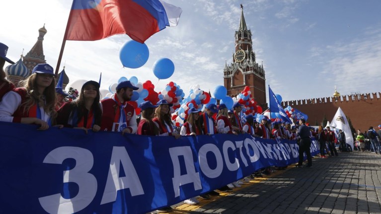 Κάτω από έναν ηλιόλουστο ουρανό, οι διαδηλωτές πραγματοποίησαν πορεία στην Κόκκινη Πλατεία, υψώνοντας σημαίες και μπαλόνια κάτω από τα τείχη του Κρεμλίνου. Το 2016 και το 2015, μόνο 100.000 άνθρωποι είχαν μετάσχει σε αυτή τη μεγάλη πορεία της Μόσχας, σύμφωνα με στοιχεία της αστυνομίας.