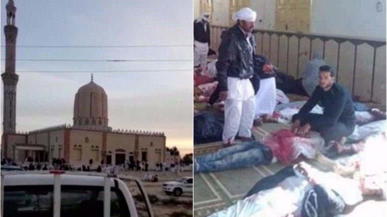 Τα κρατικά ΜΜΕ έχουν δώσει στη δημοσιότητα σοκαριστικές εικόνες από τα θύματα, τα πτώματα των οποίων είναι καλυμμένα με κουβέρτες στο τέμενος Αl Rawdah στην περιοχή Bir al-Abed, δυτικά της πόλης El Arish.