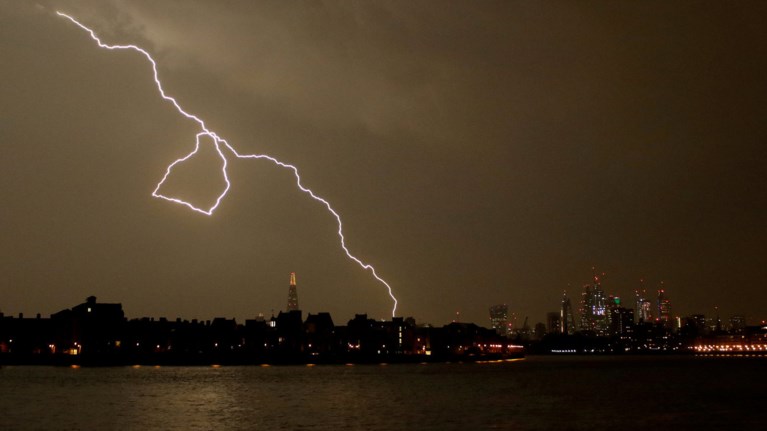 Ο βρετανικός ουρανός φωτίστηκε στη διάρκεια της νύκτας από τις ηλεκτρικές καταιγίδες και υπήρξαν πληροφορίες για πλημμύρες και για σπίτια που έμειναν χωρίς ηλεκτροδότηση μετά τις καταρρακτώδεις βροχές.