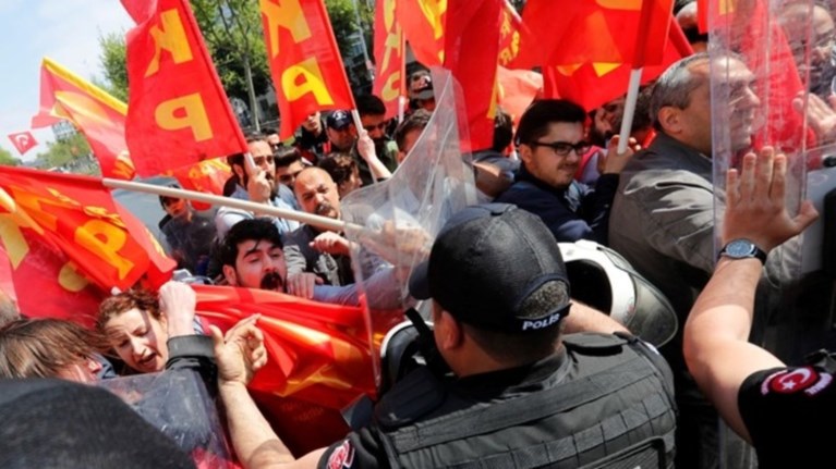 Στο πλαίσιο αυτό, στην Κωνσταντινούπολη, δεν έλειψαν οι συμπλοκές και επεισόδια ανάμεσα στις αστυνομικές δυνάμεις και το συγκεντρωμένο πλήθος, το οποίο προσπαθούσε να προσεγγίσει από νωρίς σήμερα την πλατεία Ταξίμ, φωνάζοντας συνθήματα και κρατώντας πλακάτ.