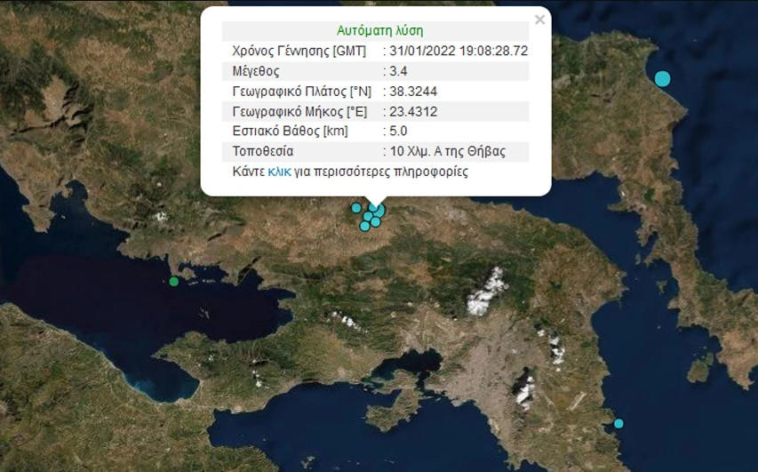 Σεισμός έγινε το βράδυ της Δευτέρας στη Θήβα, ενώ ήταν αισθητός σε περιοχές της Αττικής. Ο σεισμός είχε μέγεθος 3,4 Ρίχτερ, ενώ το εστιακό βάθος μετρήθηκε μόλις στα 5 χιλιόμετρα.