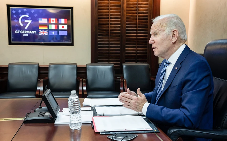 Όπως αναφέρει, ο Τζο Μπάιντεν συμφώνησε με τους ηγέτες των G7 να επιβληθούν ισοπεδωτικές κυρώσεις και άλλα οικονομικά μέτρα κατά της Ρωσίας.