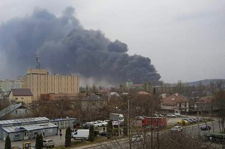 Λίγο μετά τις πέντε το απόγευμα του Σαββάτου χτυπήθηκε από αέρος η περιοχή μέσα στην πόλη της Λβιβ όπου βρίσκονται πετρελαϊκές εγκαταστάσεις.