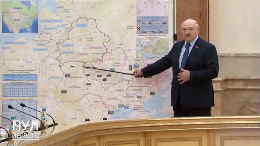 Συγκεκριμένα, κατά τη διάρκεια συνάντησης του Λουκασένκο με το συμβούλιο ασφαλείας του, ο Λευκορώσος πρόεδρος βρέθηκε μπροστά σε έναν χάρτη στο οποίο περιγράφεται λεπτομερώς το σχέδιο μάχης της Ρωσίας στην Ουκρανία και το πλάνο για την κατάληψη βασικών πόλεων.
