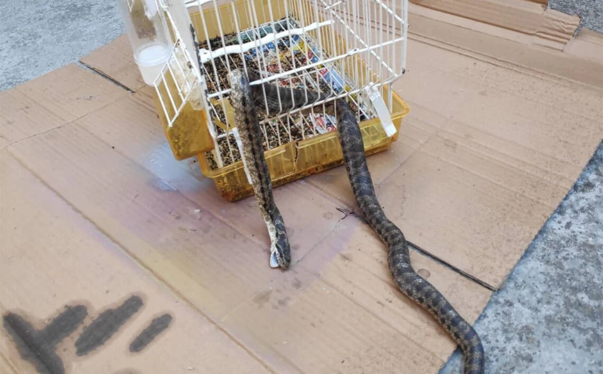 Mε ένα ιδιαίτερα ασυνήθιστο θέαμα ήρθε αντιμέτωπος ένας κάτοικος στη Λάρισα, καθώς βγήκε στο μπαλκόνι του και είδε ένα φίδι να έχει μπει στο κλουβί που ήταν το καναρίνι, να έχει φάει το πουλί και να έχει σφηνώσει, καθώς δεν μπορούσε να φύγει.