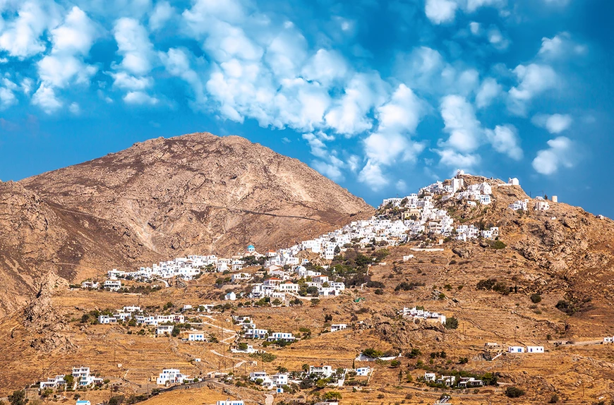 Αμφιθεατρικά χτισμένη στο βραχώδες ύψωμα του όρμου του Λιβαδιού, αποτελεί πρότυπο μεσαιωνικού οχυρωμένου οικισμού, ενώ στο εσωτερικό της κρύβει αμέτρητες εκπλήξεις για τον επισκέπτη που έχει όλη την διάθεση να την ανακαλύψει εκ των έσω. Δαιδαλώδη γραφικά σοκάκια, πάλλευκα κτίρια παραδοσιακής κυκλαδίτικης αρχιτεκτονικής, γραφικές πλατείες και γουστόζικα μαγαζιά συνθέτουν την σύγχρονη εικόνα της.