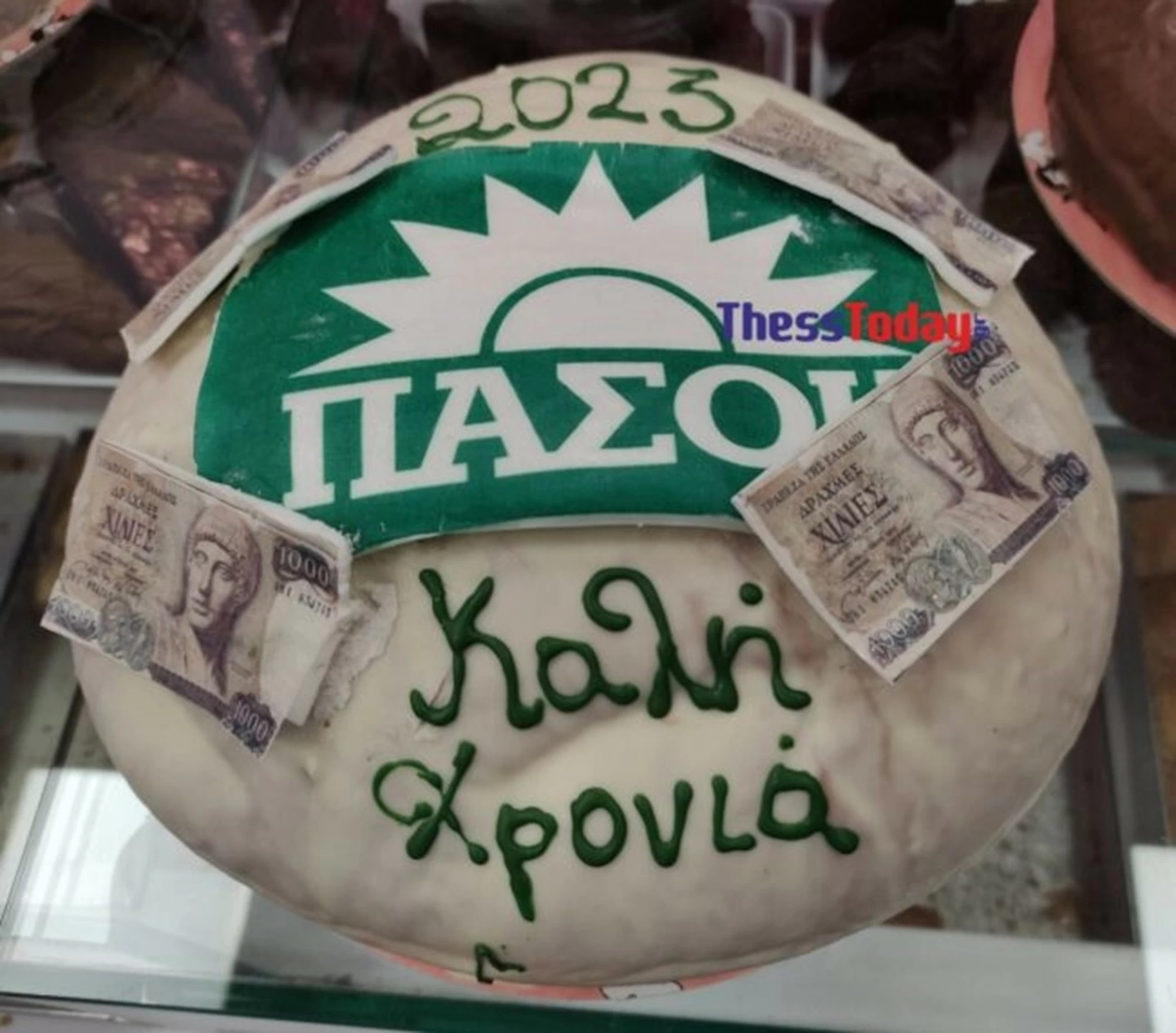 Μία νέα ιδιαίτερη ιδέα είχε ένα ζαχαροπλαστείο στην Κατερίνη, καθώς μετά τα σοκολατένια αυγά που έκανα θραύση το Πάσχα, έρχεται τώρα στις γιορτές για να φτιάξει βασιλόπιτες ΠΑΣΟΚ με φλουρί… πεντοχίλιαρο.
