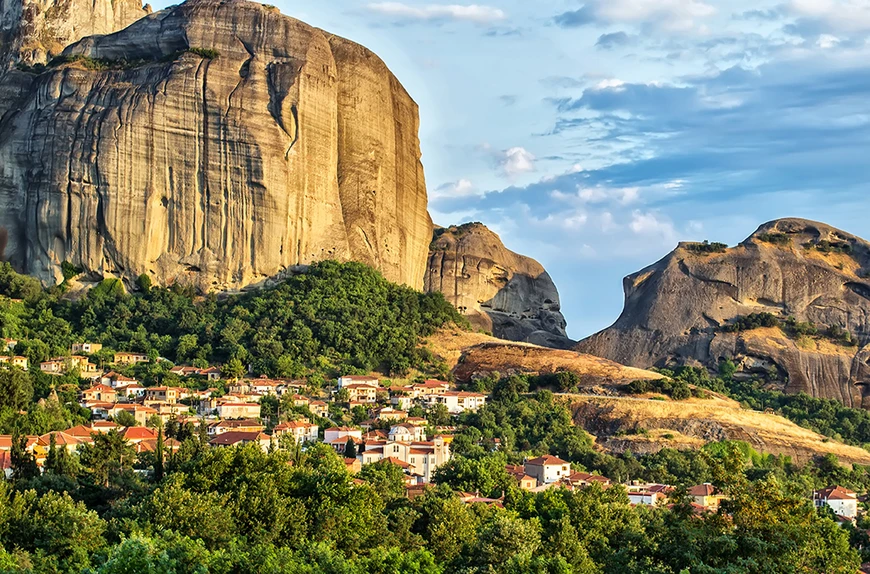 Ο επισκέπτης θα έρθει αντιμέτωπος με ένα εντυπωσιακό τοπίο γεμάτο πλατώματα, χαράδρες και τα απόκοσμα βράχια των Μετεώρων που μοιάζουν να θέλουν να αγγίξουν τον ουρανό. Και μοναδική στιγμή, όπως την έχουν περιγράψει πολλοί, είναι όταν σηκώνεις το βλέμμα σου προς τα Μετέωρα, ειδικά τις απογευματινές ώρες.