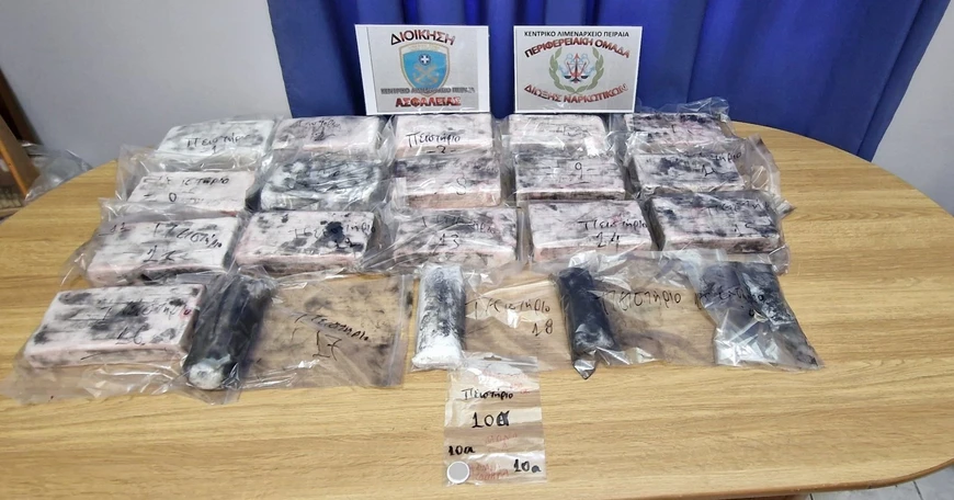 Είκοσι συσκευασίες με κοκαΐνη συνολικού μικτού βάρους 17,598 κιλών, εντοπίστηκαν σε πλοίο μεταφοράς εμπορευματοκιβωτίων στον Πειραιά, το βράδυ της Κυριακής (26/3). Το πλοίο με σημαία Χονγκ Κονγκ, είχε αναχωρήσει από το Εκουαδόρ φορτωμένο με μπανάνες και τελικό προορισμό της Νικομήδεια της Τουρκίας.