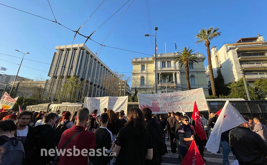Στο σημείο υπήρχε ισχυρή δύναμη της αστυνομίας που με κλούβες είχε αποκλείσει την περίμετρο της γαλλικής πρεσβείας.