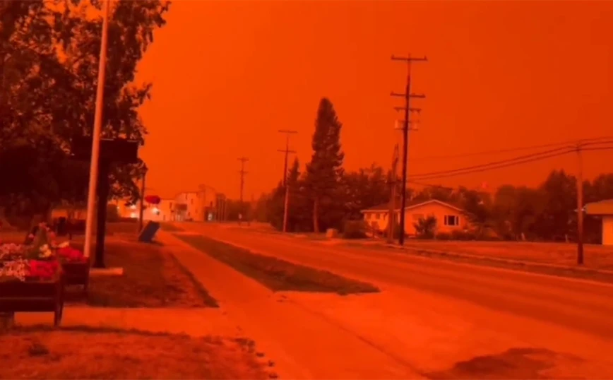 Τα βίντεο που κυκλοφορούν στο διαδίκτυο δείχνουν την έκταση της καταστροφής από τις 230 πυρκαγιές που συνεχίζουν να καίνε τον Καναδά. Ως αποτέλεσμα αυτών, ο ουρανός έχει βαφτεί κόκκινος, δημιουργώντας ένα τρομαχτικό θέαμα.