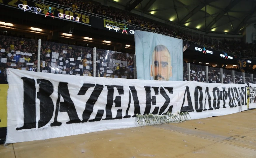 Έτσι, στο πέταλο της OPAP Arena σηκώθηκε ένα πανό που χαρακτηρίζει τους οπαδούς του Παναθηναϊκού «δολοφόνους και ναζί», όπως και ένα ακόμη στο οποίο υπάρχει αναφορά στις ομάδες με τις οποίες έχουν καλές σχέσεις οι οπαδοί των Πράσινων όπως και σε δολοφονίες που έγιναν στο παρελθόν.