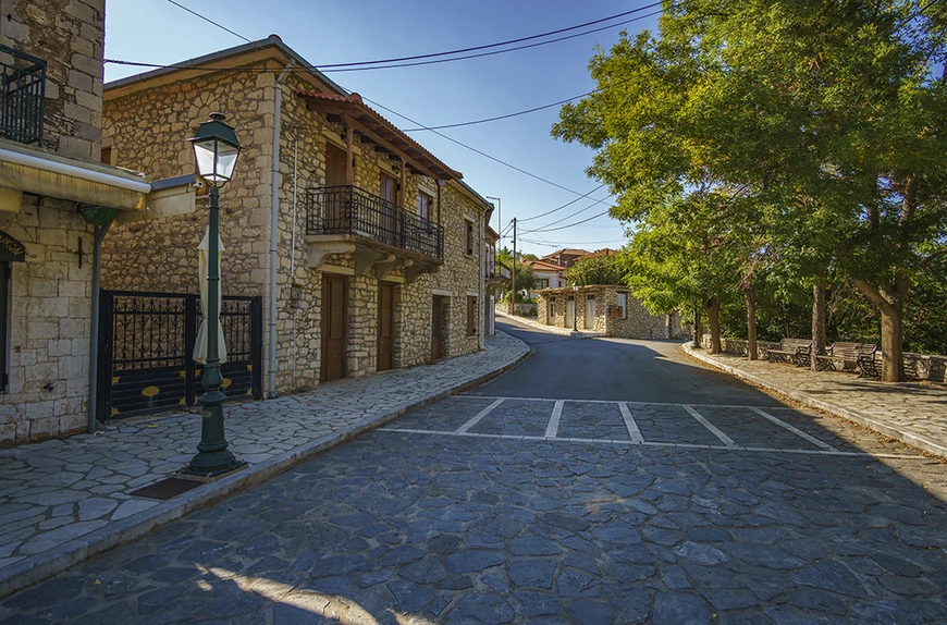 Υπέροχα διατηρημένα πετρόκτιστα κτίρια, που διατηρούν ανέπαφη την παραδοσιακή τους αρχιτεκτονική, λιθόστρωτα δρομάκια που ταξιδεύουν νομίζεις σε άλλη εποχή και μια κεντρική πλατεία «κούκλα» για να απολαύσει κανείς αυθεντικούς παραδοσιακούς μεζέδες με τσίπουρο ή μερακλίδικο ελληνικό καφέ στα παραδοσιακά καφενεδάκια της.