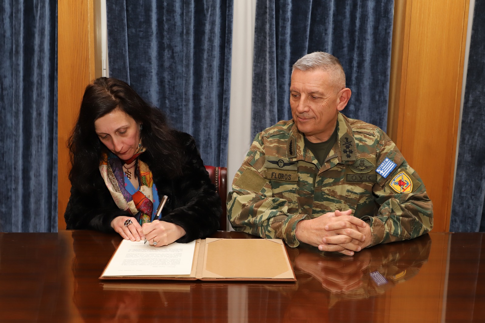 Το κλίμα στην συνάντηση ήταν ιδιαίτερα συγκινησιακά φορτισμένο, με τον Στρατηγό Φλώρο να ευχαριστεί την κα Τσούνη για την ευγενική της χειρονομία, ενώ ταυτόχρονα εξήρε την διαχρονική και τεράστια προσφορά του πατέρα της και Υποστρατήγου Επί Τιμή Ιάκωβου Τσούνη στις Ένοπλες Δυνάμεις, αναφερόμενος στην φιλοπατρία και στο μεγαλείο της ψυχής του.