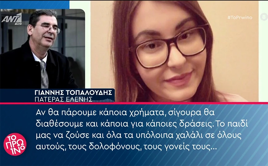 Ο πατέρας της Ελένης Τοπαλούδη έκανε δηλώσεις και εξήγησε το λόγο, που ο ίδιος και η σύζυγος του κατέθεσαν αγωγή με την οποία ζητούν αποζημίωση 980.000 ευρώ από τους δολοφόνους της κόρης τους.