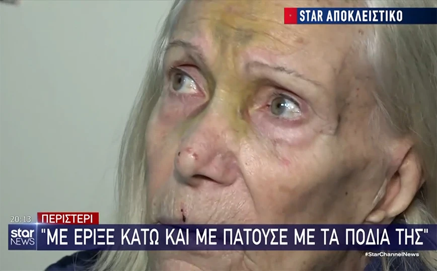 Η ηλικιωμένη μίλησε στο Star και δήλωσε πως «με έπιασε και με πέταξε κάτω, μπαμ. 16-17 χρονών είναι αυτή. Με πάταγε πάνω τον αυχένα, στο κεφάλι, στο πόδι».