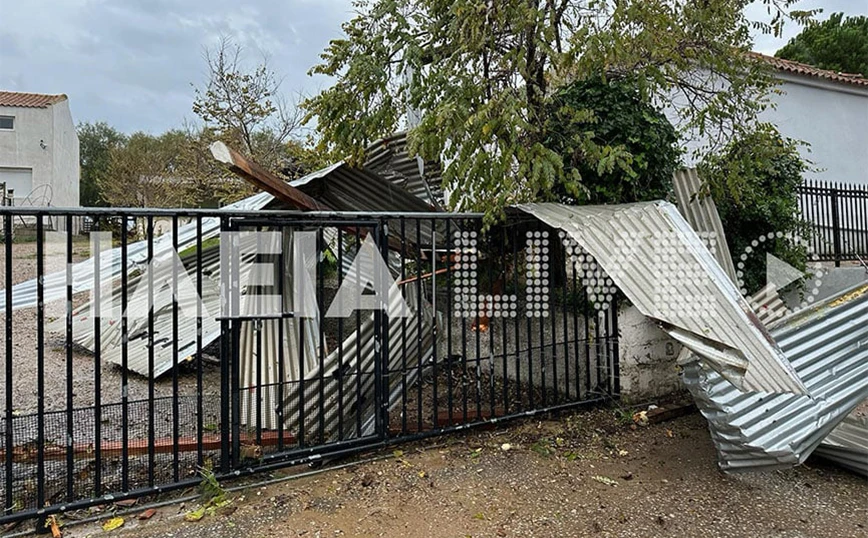 Έτσι, μικρός ανεμοστρόβιλος σάρωσε την περιοχή και έχει προκαλέσει ζημιές σε στέγαστρα.