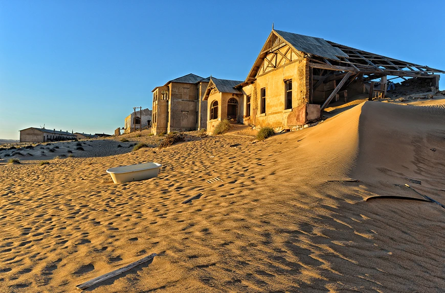 Κάποτε μια από τις πλουσιότερες κοινότητες της Αφρικής, το Kolmanskop σήμερα έχει «καταπιεί», στην κυριολεξία, η έρημος Ναμίμπ.