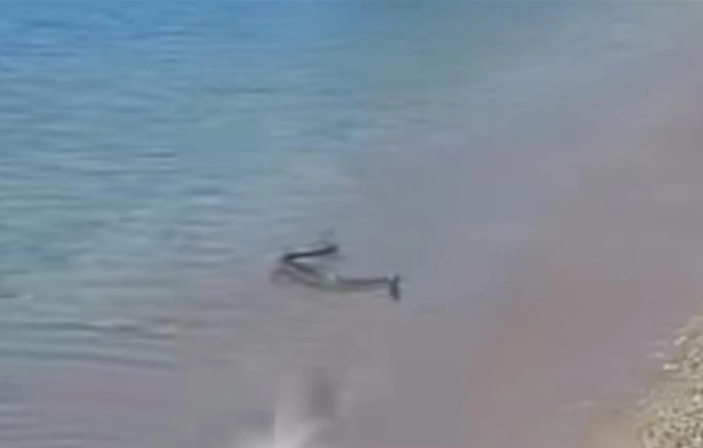 Στο βίντεο που τράβηξε φαίνονται πεντακάθαρα οι κινήσεις του ερπετού που κολυμπούσε με θέα την Γέφυρα Ρίου Αντιρρίου. Κάποια στιγμή το φίδι βγήκε στην παραλία και οι λουόμενοι δεν πίστευαν στα μάτια τους.