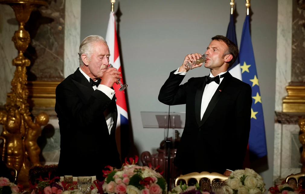 Το διεθνές πολιτικό σάιτ politico αναφέρει πως ο λογαριασμός που έφτασε στη γαλλική προεδρία από το δείπνο προς τιμήν του Καρόλου ήταν περίπου 475.000 ευρώ, από τα οποία τα 165.000 ήταν για το catering και τα 40.000 πήγαν στα… κρασιά. Το πλουσιοπάροχο μενού για τους καλεσμένους του Εμμανουέλ Μακρόν, μεταξύ αυτών ο Μικ Τζάγκερ και ο Χιου Γκραντ, περιελάμβανε μπλε αστακούς και Château Mouton Rothschild του 2004.