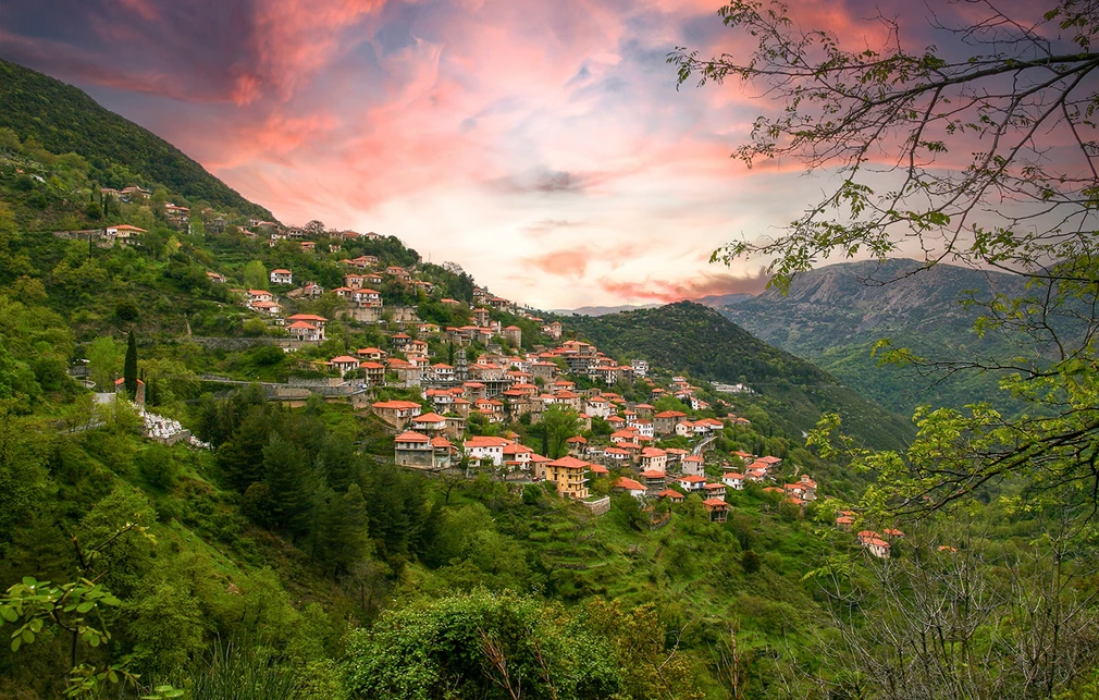 Πέτρινα αρχοντικά με σκαλιστές εξώπορτες και σκεπαστές αυλές, λιθόστρωτα σοκάκια, πέτρινα μονοπάτια, τοξωτά γεφύρια και παλιές εκκλησίες συνθέτουν το φωτογραφικό κολάζ του χωριού, που σίγουρα δεν αφήνει κανέναν ασυγκίνητο.