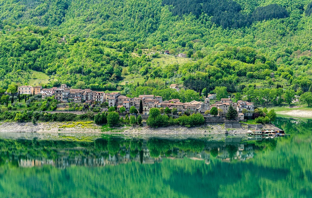 Ένα μέρος φανταστικό, με θέα, αλλά και κρυμμένη ανάμεσα σε καταπράσινους λόφους. Η Turano είναι τεχνητή λίμνη και κατασκευάστηκε τη δεκαετία του ’30, επί Μουσολίνι, για να τροφοδοτεί με νερό τα κοντινά εργοστάσια παραγωγής ενέργειας.