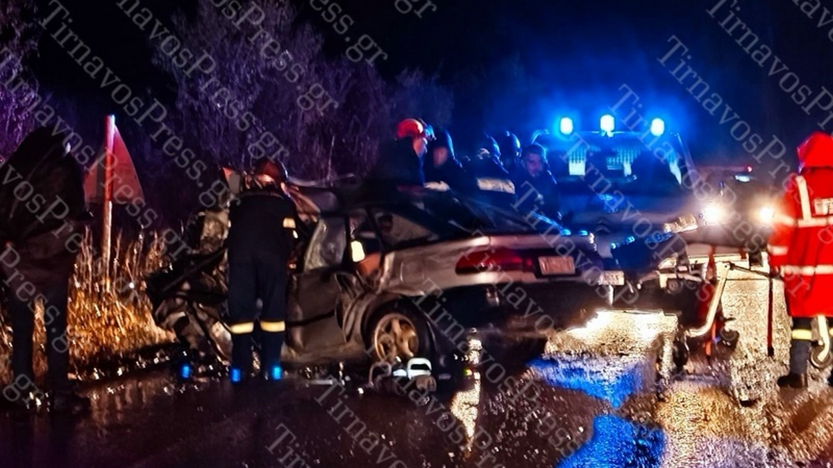 Θανατηφόρο τροχαίο σημειώθηκε στον Τύρναβο το βράδυ της Κυριακής, όταν αυτοκίνητο πέρασε στο αντίθετο ρεύμα και συγκρούστηκε μετωπικά με άλλο όχημα, προκαλώντας τον θάνατο ενός άνδρα και τον εγκλωβισμό ενός πατέρα.