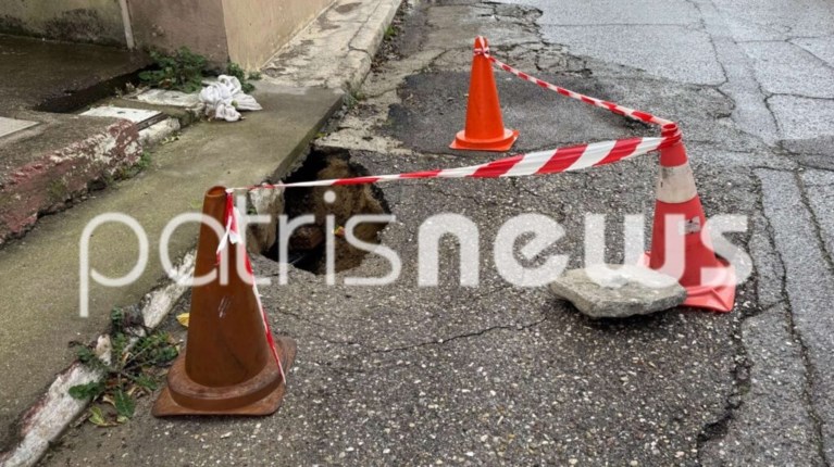 Στην οδό Ροφιά, που οδηγεί προς το 3ο Δημοτικό και 4ο Γυμνάσιο της πόλης του Πύργου, υποχώρησε το οδόστρωμα την ώρα που περπατούσε ο μαθητής με αποτέλεσμα να πέσει μέσα στην τρύπα.