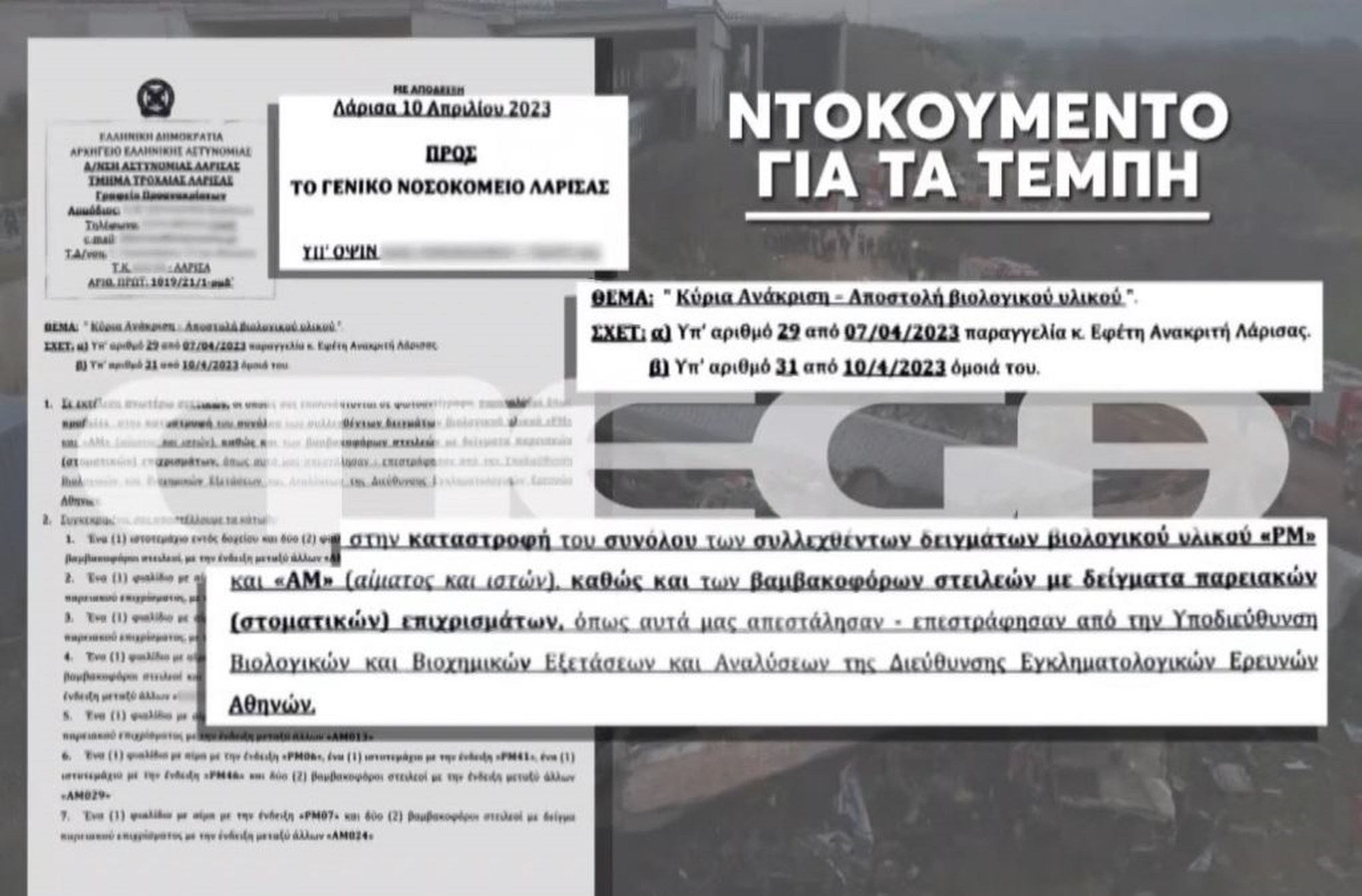 Όπως ανέφερε στο MEGA ο αστυνομικός συντάκτης των "Νέων" και του "Βήματος", Βασίλης Λαμπρόπουλος, με αυτό το έγγραφο ο ανακριτής είχε ζητήσει την καταστροφή δειγμάτων αίματος και επιχρισμάτων των 57 θυμάτων της τραγωδίας.