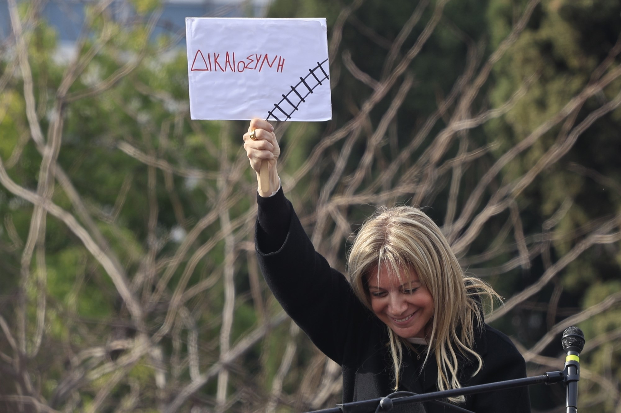 "Το 2019 άκουσα τον νικητή των εκλογών να μιλάει για ανάγκη αναβάθμισης των σιδηροδρόμων γιατί σίγουρα θα εκτροχιαστούν. Άρα γνώριζαν. Λεπτομερώς. Γνώριζαν τον κίνδυνο. Έπαιζαν τις ζωές μας σε ρώσικη ρουλέτα (…). Και πράγματι. Τα τρένα συγκρούστηκαν", πρόσθεσε, έχοντας πίσω της ένα πανό που έγραφε: "Ήμασταν όλοι-όλες μέσα στο τρένο".