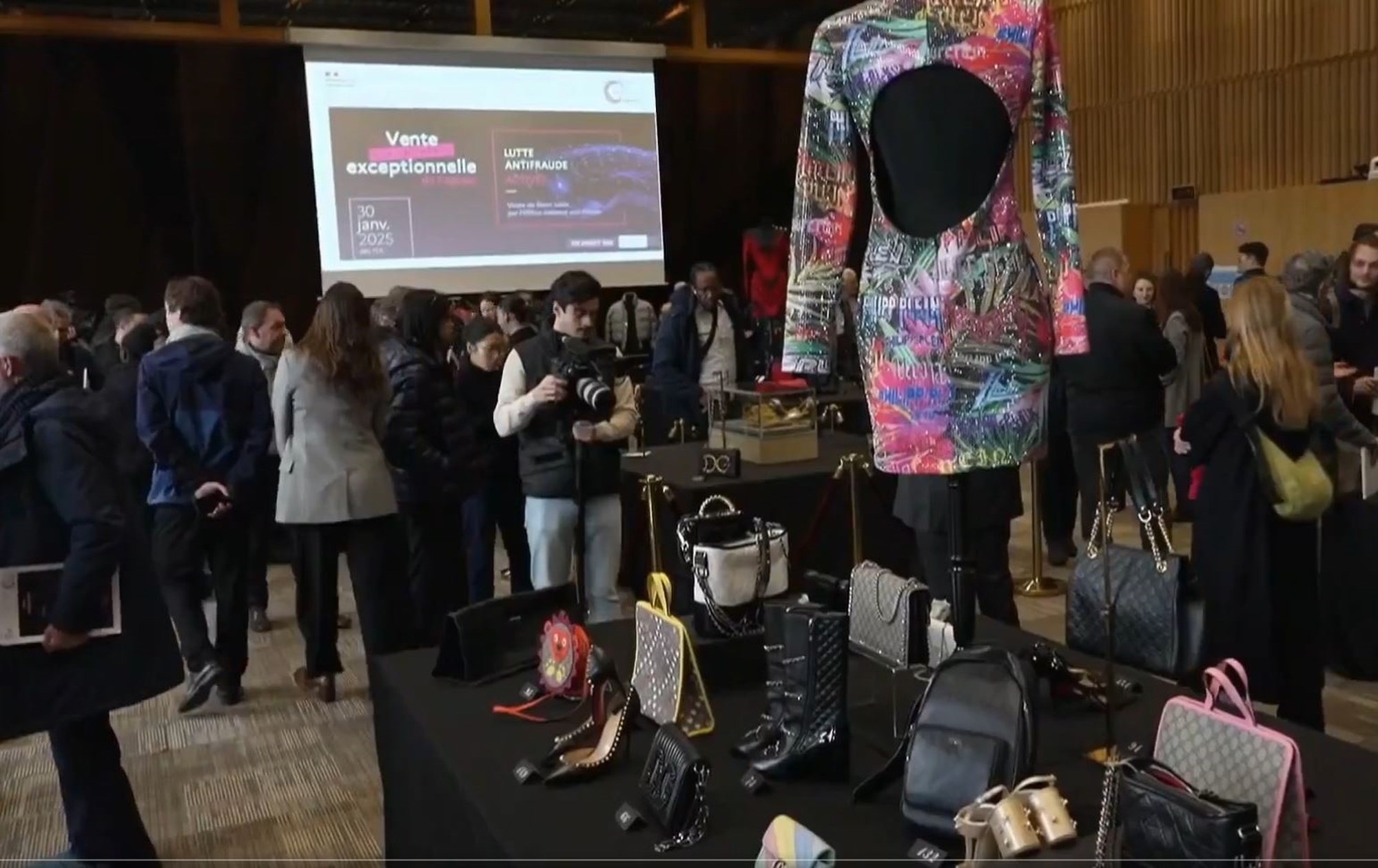 Τα αγαθά αυτά, που κατασχέθηκαν στο πλαίσιο 14 ερευνών, εκτίθεντο σε μια αίθουσα του υπουργείου Οικονομικών.