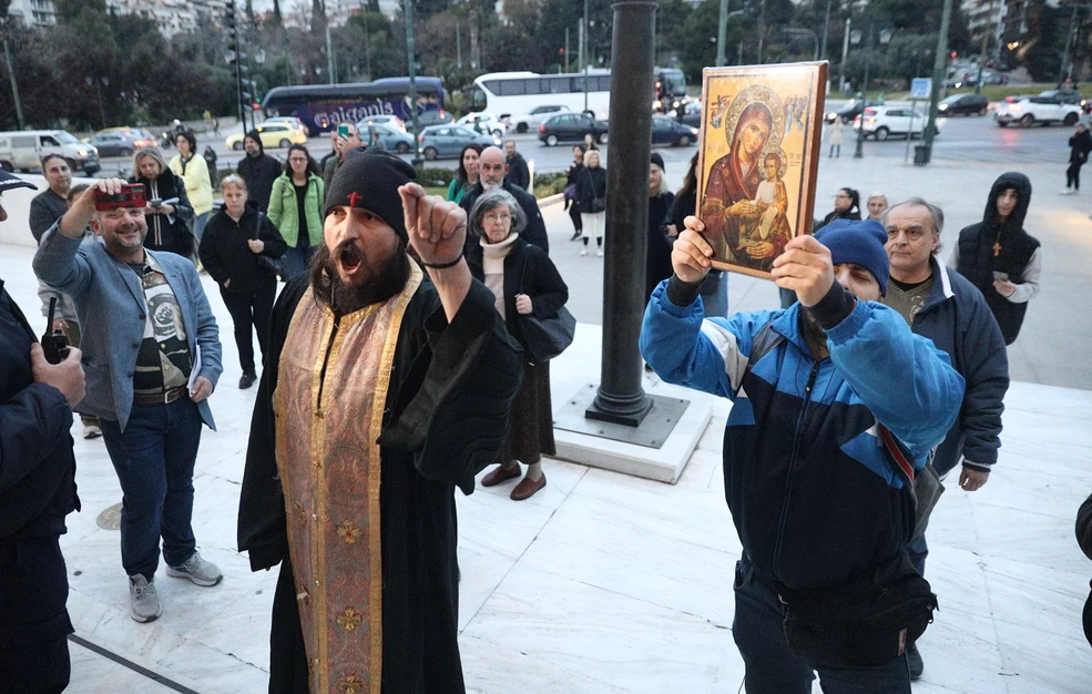 Μεγάλη ένταση προκλήθηκε έξω από την Πινακοθήκη, όταν ομάδα υπερορθόδοξων προπηλάκισε μέλη σωματείων από τον χώρο του πολιτισμού που διαδήλωναν ειρηνικά υπέρ της ελευθερίας της έκφρασης.