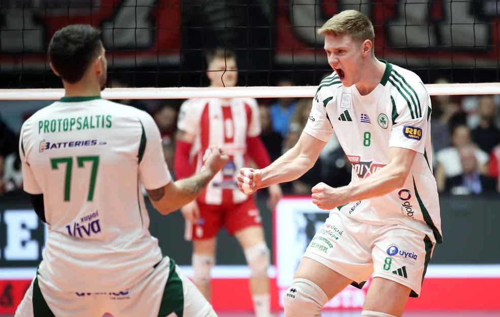 Ο Ολυμπιακός πήρε τα πρώτα δύο σετ, ο Παναθηναϊκός έκανε μεγάλη ανατροπή παίρνοντας τα επόμενα τρία, επικράτησε με 3-2 και έκανε το 2-0 στους τελικούς της Volley League, πράγμα που σημαίνει ότι χρειάζεται ακόμη μία νίκη για να κατακτήσει το πρωτάθλημα.