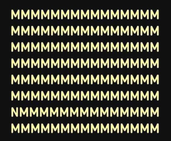 Στην παρακάτω εικόνα βλέπετε πολλές σειρές με το γράμμα «Μ». Κάπου κρύβεται ένα γράμμα «Ν». Μπορείτε να το εντοπίσετε σε μόλις 5 δευτερόλεπτα; Κοιτάξτε την εικόνα προσεκτικά, από διαφορετικές οπτικές γωνίες.