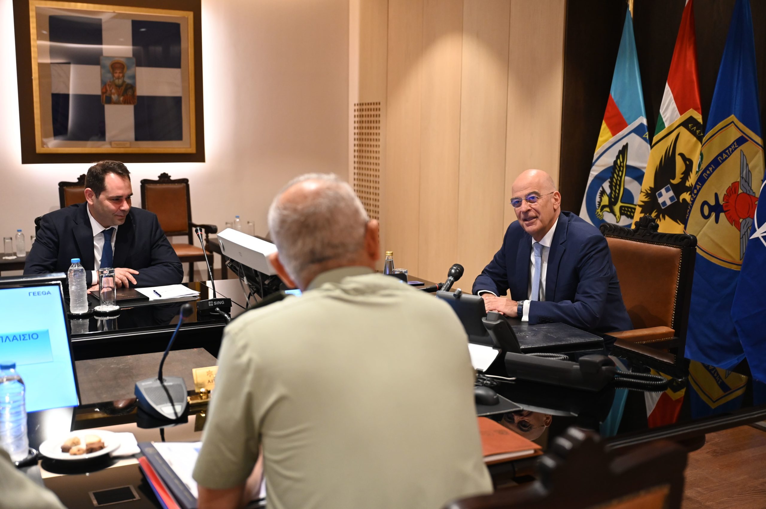 O υπουργός Εθνικής Άμυνας, Νίκος Δένδιας, συναντήθηκε την Πέμπτη 17 Ιουλίου 2025, με τον Υφυπουργό Εθνικής Οικονομίας και Οικονομικών, αρμόδιο για τη Δημοσιονομική Πολιτική, Θάνο Πετραλιά.
