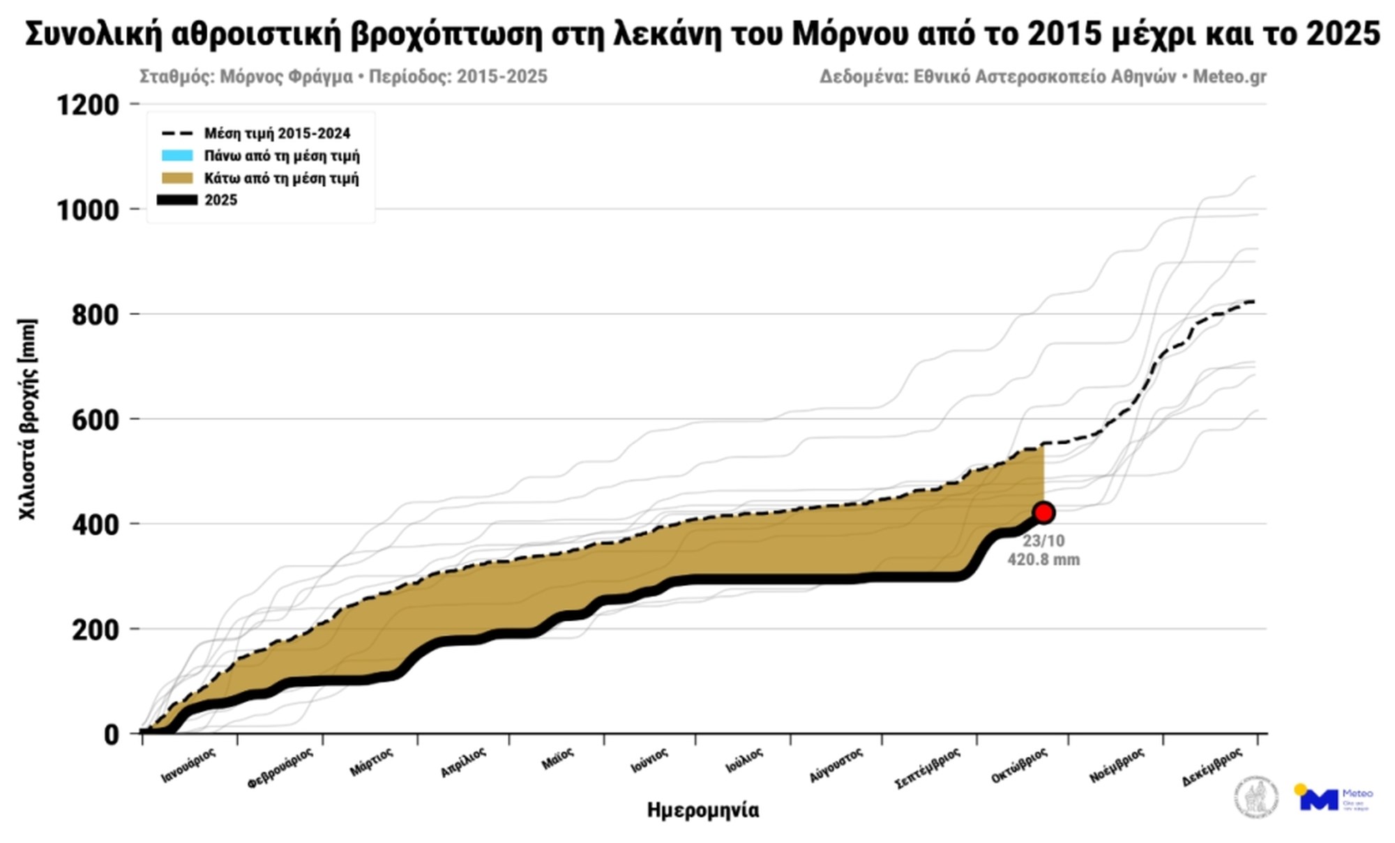 Το σήμα συναγερμού ηχεί για τον Μόρνο, κύριο τροφοδότη της Αττικής, τα αποθέματα του οποίου βρίσκονται πλέον σε ιστορικά χαμηλά κάτω από 400 εκατ. κυβικά.